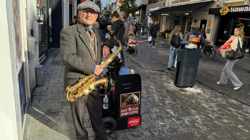 Met deze mobiele versterking op batterijen kan hij op eender welke locatie optreden en kan men genieten van aangename muziek.